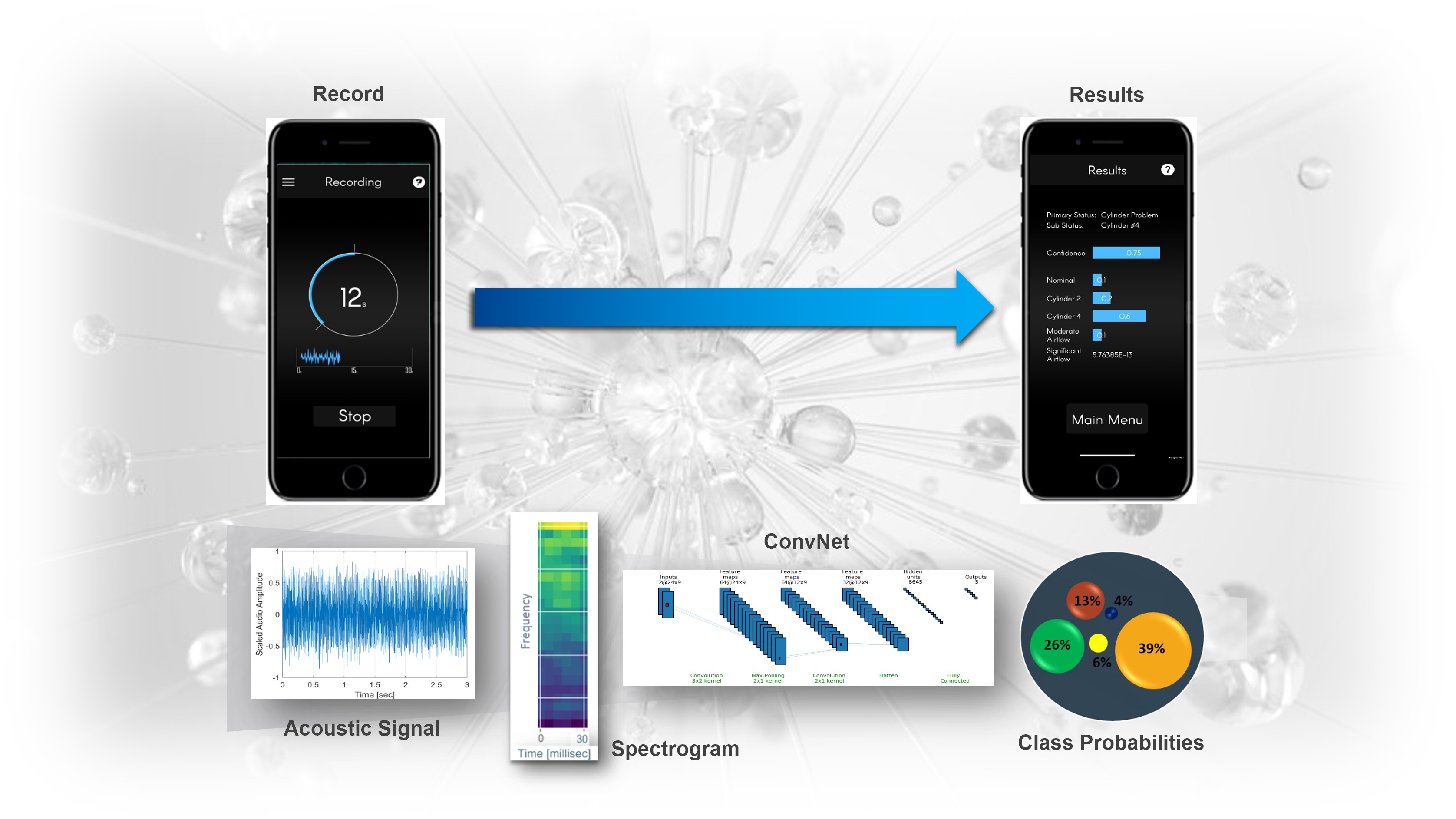 Dr. McKenna led the proof-of-concept technical solution development of a ground-breaking capability that uses short, recorded audio segments from a typical mobile device, such as a cellphone, to assess the health of machinery, in this case, US Military Tactical Quiet Generators. The approach, which was a mix of signal processing and deep learning (convolutional neural nets), yielded very encouraging results (e.g., 5-way classification accuracies near 80%) and paved the way for additional internal investment that led to, among other things, a patent award.
